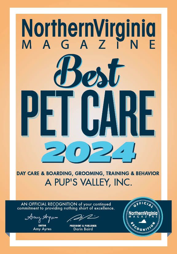 Please vote for us for in 3 categories for Best Of 2022 (Daycare/Boarding and Grooming) by Northern Virginia Magazine -> https://northernvirginiamag.com/best-pet-care-poll/ Poll is out and open thru 2/11. Would you please vote for us and our Small Business partners in the categories below? ๐Ÿฅ‡Best Day Care & Boarding: A PUP’S VALLEY ๐Ÿฅ‡Best Groomer: A PUP’S VALLEY Best Training and Behavior: A PUP’S VALLEY OUR PARTNERS: Best Dog Sitter & Dog Walker: Meg's Loving Pet Care, LLC Best Pet Supply Store: Miss Kibbles Best Mobile Vet: Vets To Pets House Call Service Thank you for your support!